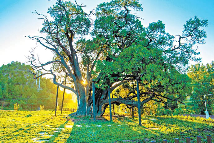 “九搂十八杈”,是一棵已有3500年树龄的古柏。