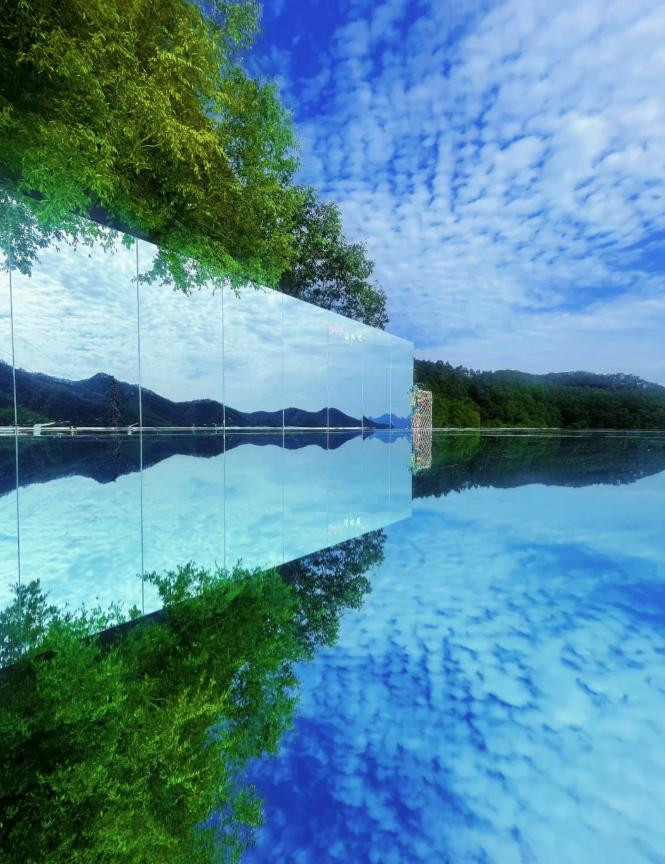 天空之镜:清晨或傍晚湖面才平,能拍出云天一色的对称倒影。