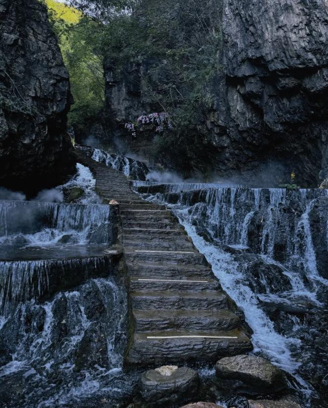 这不是网红打卡地,没有人挤人,没有被塑造的滤镜美感,只有一步一瀑的惊喜和三面环林的凉意。夏天,在这里熨帖地退场。