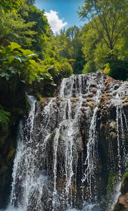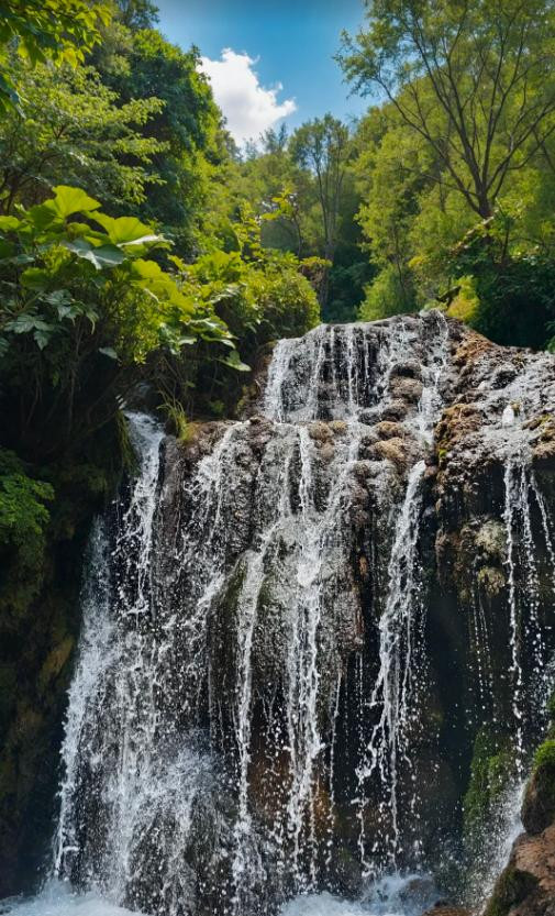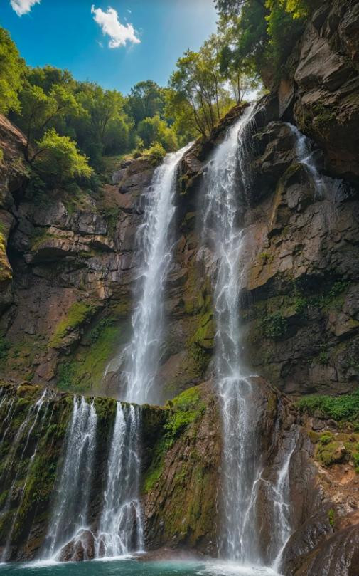竞姿瀑:多股瀑布并排落下,有种天然喷泉广场的气势。
