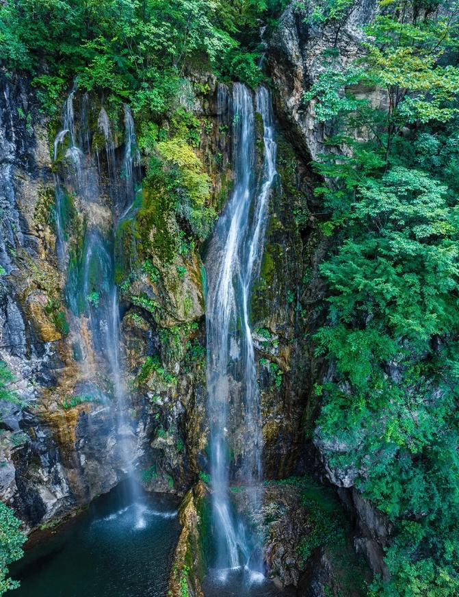 双妃瀑:细水并落,流线感比双龙更柔,但气场更仙。