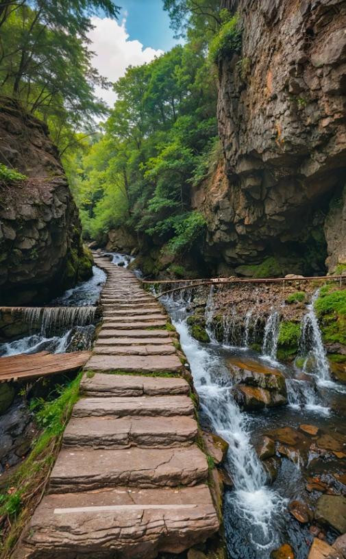 珍珠瀑:能“走进”瀑布中心,一条步道贴水而建,轻轻踏上石板,水帘贴脸而过。