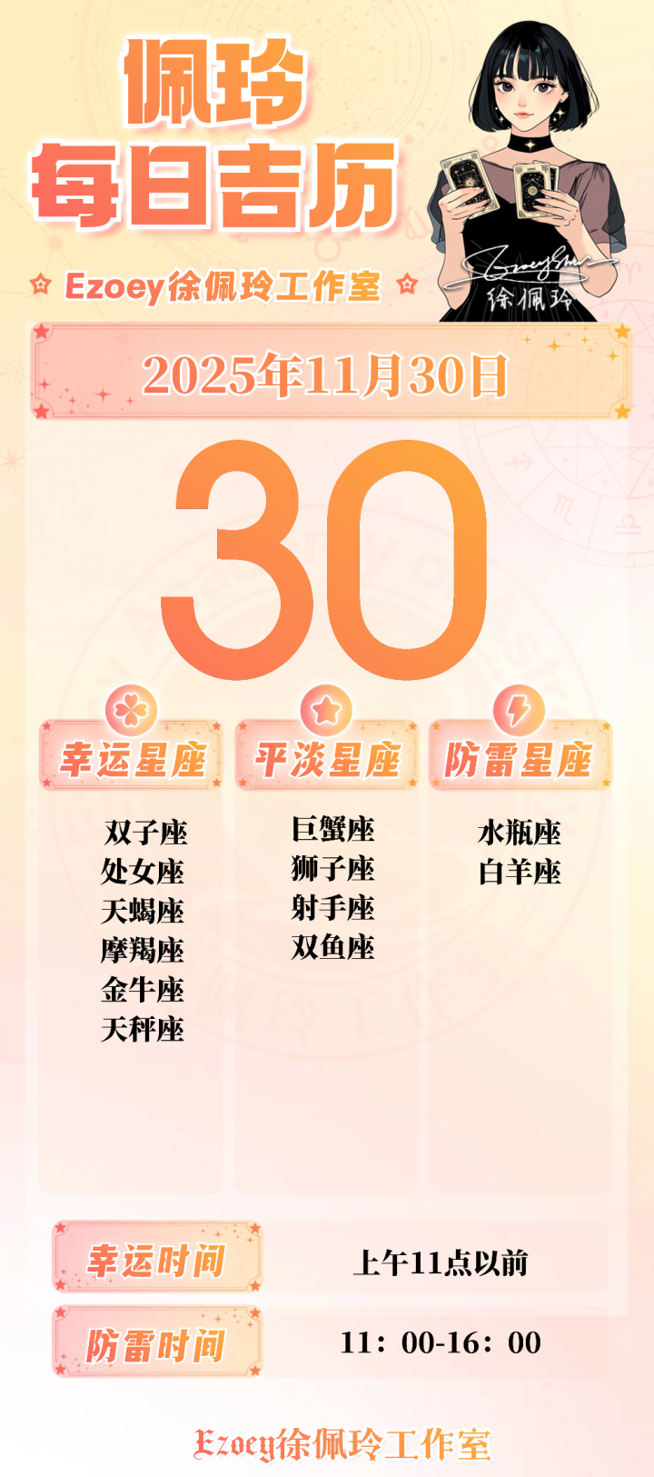 【11.30日播报】幸运星座: 双子座、处女座、天蝎座、摩羯座、金牛座、天秤座——Ezoey徐佩玲25年星座播报