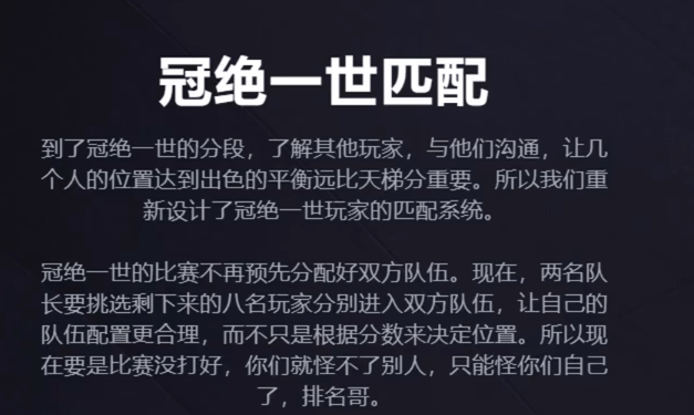 可以说,对于改好匹配机制这个“业界大难题”,小王此次并非只是简单地加几个热补丁,而是通过参与形式上的创新与开放,首次让广大玩家成为了“匹配规则”的制定者。