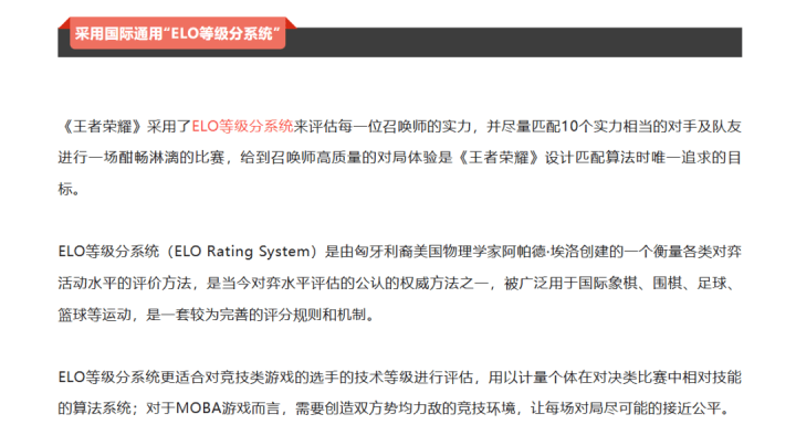 一直以来,《王者荣耀》的匹配机制相对公开,其逻辑在一定程度上是可被玩家观察和感知的。2018年时,《王者》官方就表示游戏主要采用的是elo机制进行匹配,主要看的是综合能力。随着后续的发展,这套机制也并非一成不变,不断在迭代升级,去尽可能地兼顾玩家们的不同需求。去年6月的“策划开麦”栏目中,匹配策划公开作出过解释,不同分路、不同英雄定位不同,其评分的标准也不一样,比如辅助位对“杀敌数”可能就没有那么高的权重。